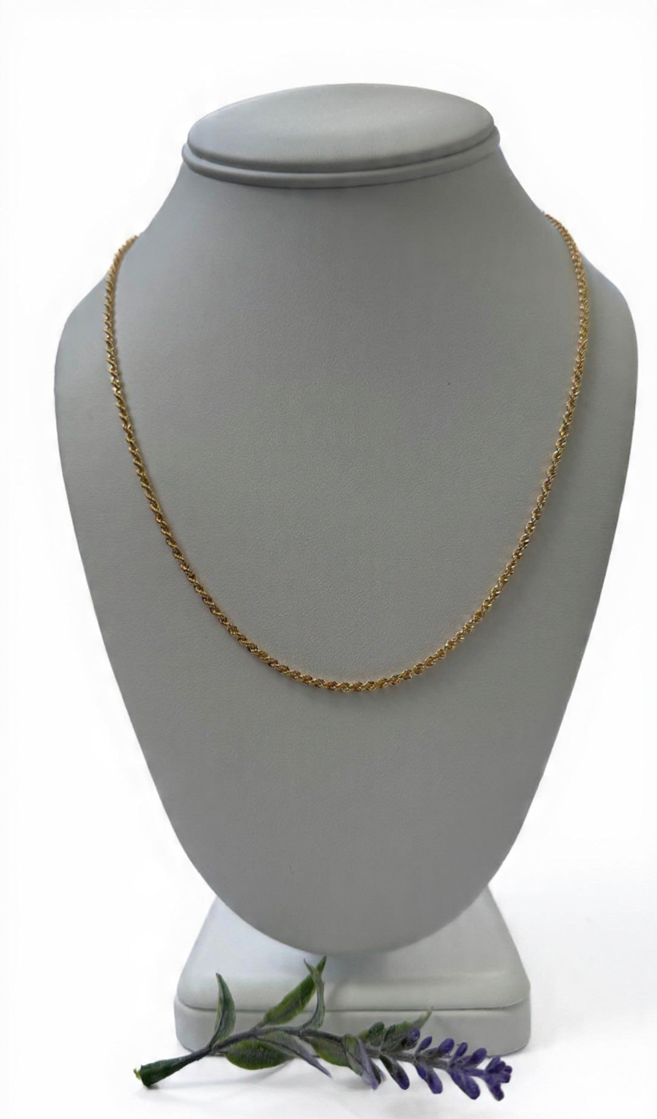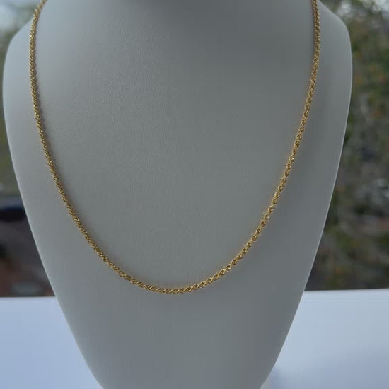 Esta cadena rope de oro 18k captura la esencia del diseño clásico con un toque contemporáneo. Su textura trenzada refleja la luz desde múltiples ángulos, creando un efecto visual dinámico.